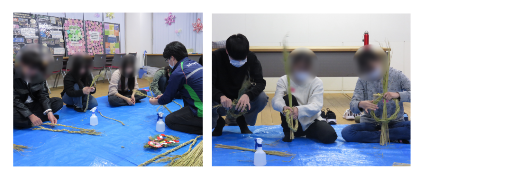 稲わらは、思っていたよりも硬く扱いが大変な様子でしたが、周りの参加者と協力しながら、少しずつコツをつかめるようになり、全員見事に完成させることができました。
