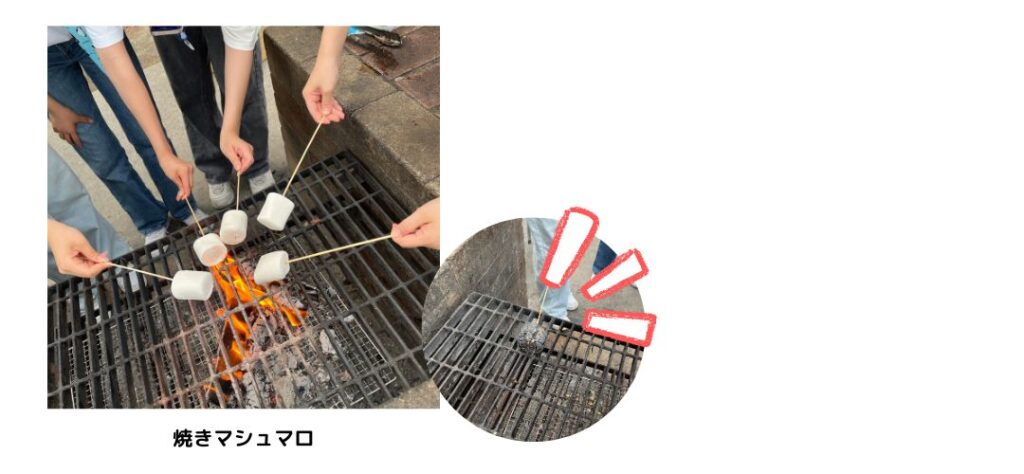 焼きマシュマロは、「YouTubeで見たことある!私も撮影したい…」と初めての体験を楽しんでいました。