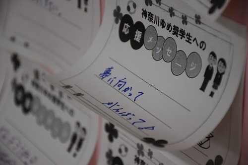 でご来場のみなさまからいただいた『奨学生への応援メッセージ』を奨学生のみなさんに