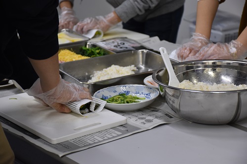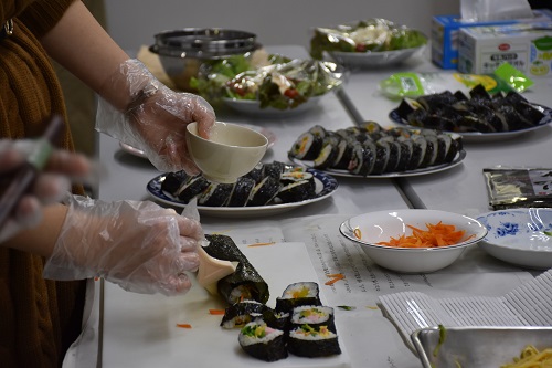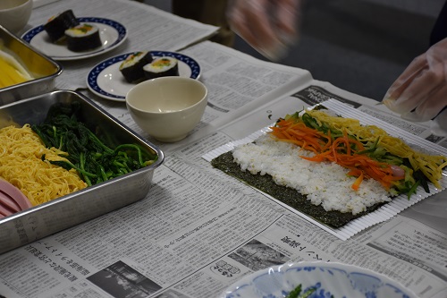 キンパ(韓国風海苔巻き)作り、ミネストローネ作り、オードブルの電子レンジ調理のグ