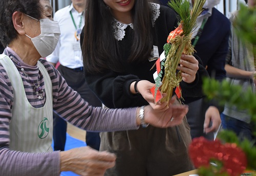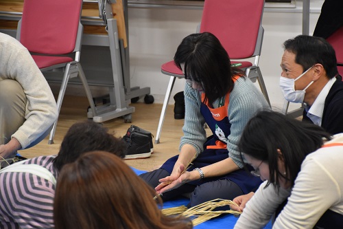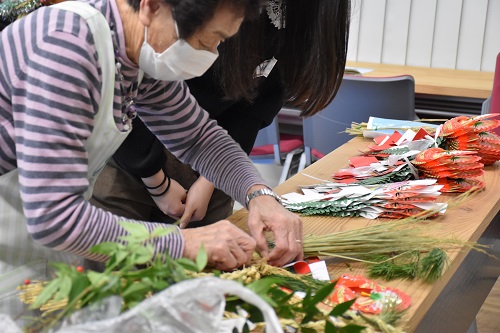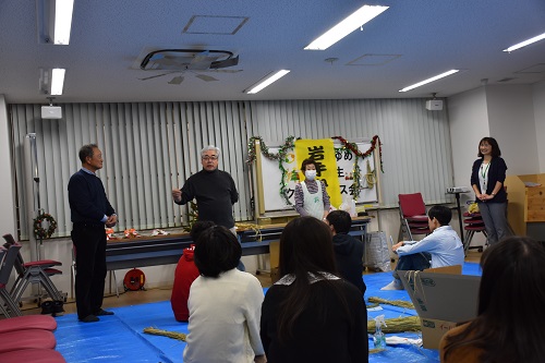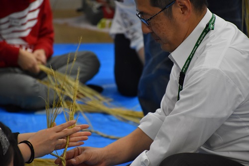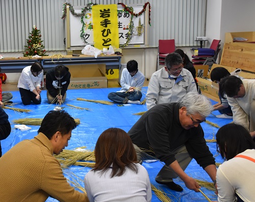 食事の後はJAいわて花巻様の協力のもと、お正月用のしめ縄作りを教えていただき