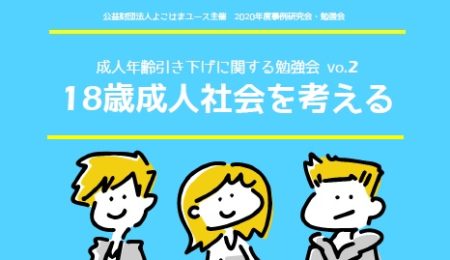 2020.11.13 / 最終更新日 : 2023.04.05 KANA 報告 【イベント開催のお知らせ】成人年齢引き下げに関する勉強会「18歳成人社会を考える」(12/16、22開催) 2020年12/16(水)、12/22(火)公益財団法人 よこはまユース主催による下記のイベントが開催されます。 2022年、日本の成人年齢が20歳から18歳に引き下げられます。 「成人年齢の引き下げ」は、私たちが関わる […]
