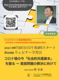 2021.10.12 / 最終更新日 : 2023.04.05 KANA イベント 【イベント開催のお知らせ】 2021年10月17日(日)14:00~ 当財団の評議員 本田正男氏が代表を務める かわさき子どもの貧困問題研究会主催にて『コロナ禍の今「社会的共通資本」を語る~貧困問題の解決に向けて』ZOOMウェビナー学習会が開催され […]